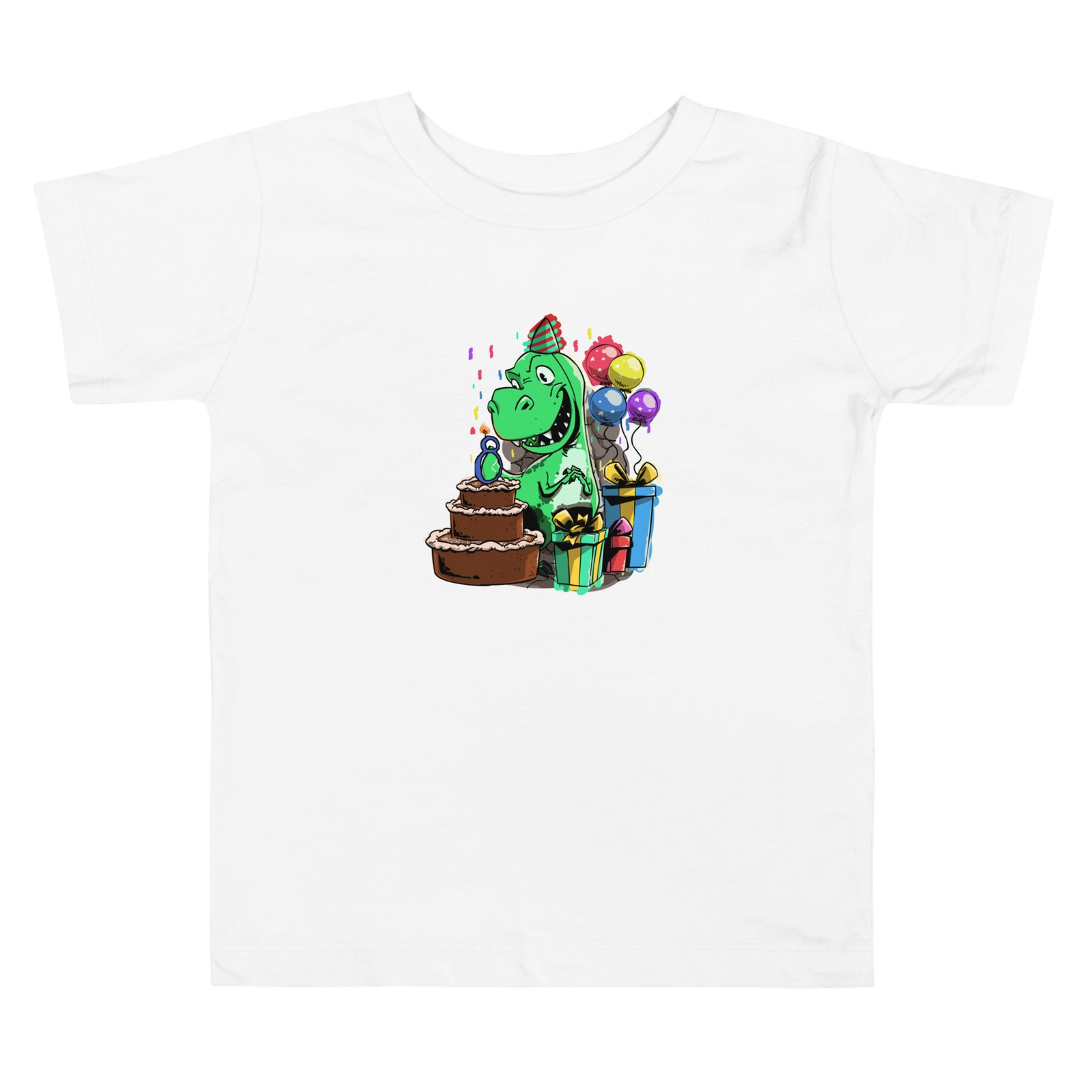 πŸŽ‰πŸ¦–Β  Design: At the heart of this tee is an adorable dinosaur donning a party hat, surrounded by confetti and balloons, ready to celebrate a dino-mite birthday! 🎈πŸ₯³ The playful design captures the excitement of a birthday party, blending the charm of dinosaurs with the joy of special occasions.