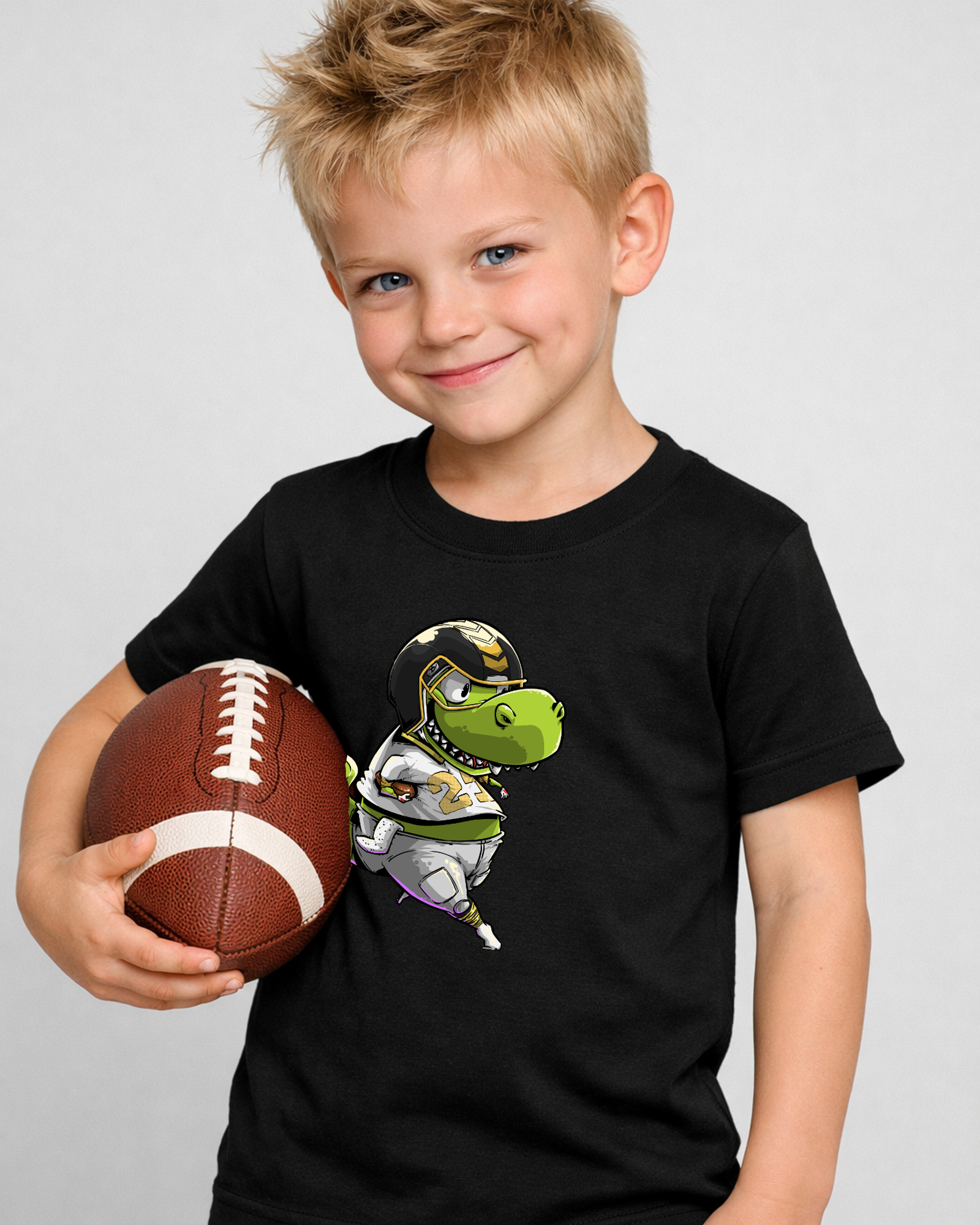 Introducing our T-Rex Dinosaur Football T-Shirt for boys, toddlers, and kids!