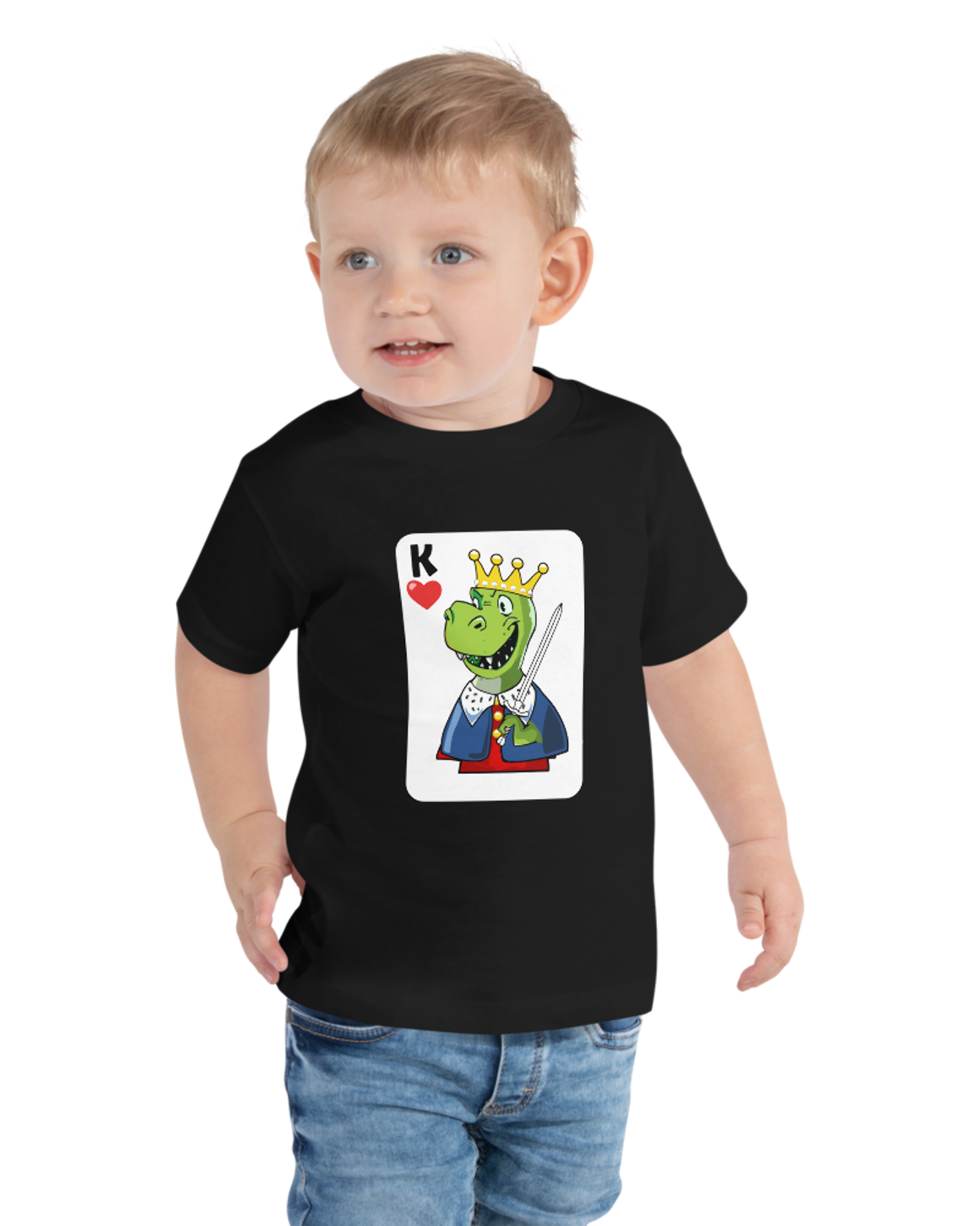 Let your young dino lover embrace the might of the T-Rex with our “T-Rex King of Cards” Dinosaur T-Shirt. Get yours now and get ready for a roaring good time and let the adventure begin!
